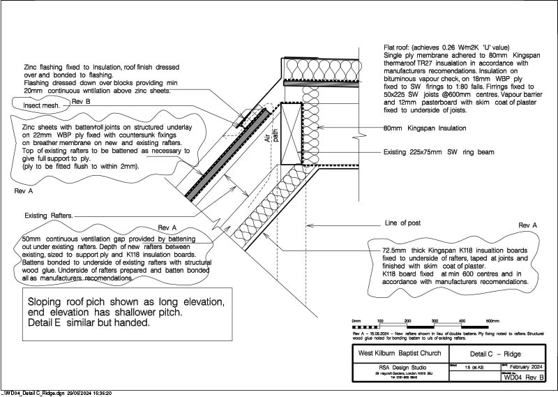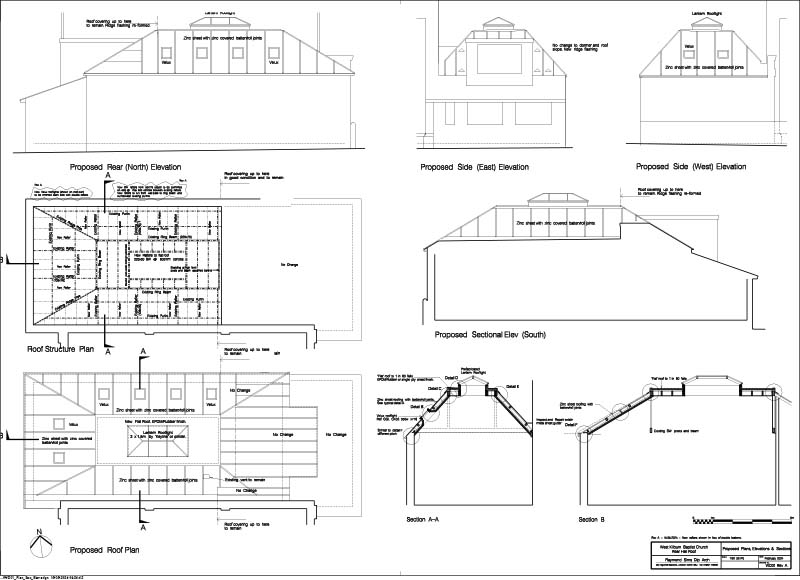 Construction commences soon, and the finished project will feature a new roof for the Rear Hall, complete with Velux Rooflights inset to a new Zinc Roof supported by additional new rafters. The existing flat roof will be replaced with a feature Lantern Rooflight.